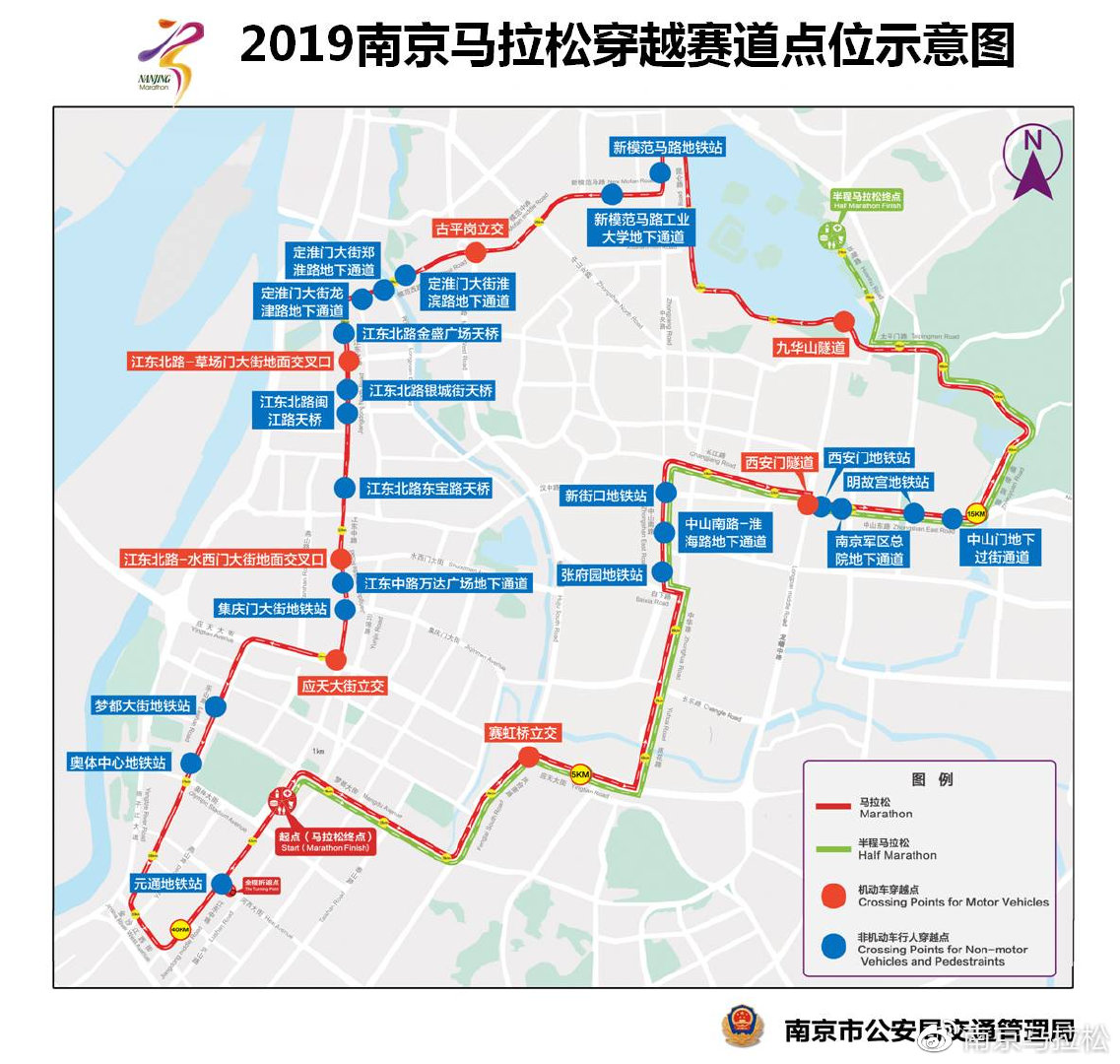 3、赛事当天,交管部门将通过FM101.1江苏交广网、FM99.7金陵之声、FM102.4南京交通台第一时间播报交通管控实时动态,为驾车外出车友了解管控时间和路段,南京交警官方微博和官方微信也会发布赛事交通管控信息,请广大车友关注。同时,交管部门联合高德、百度等导航运营商,结合比赛管控路段封闭或解封状态,实时诱导市民出行,请确需出行的广大市民及时关注。