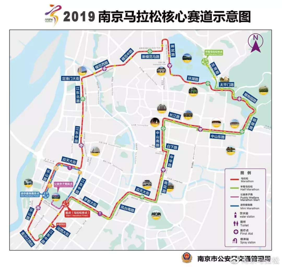 8、在赛道沿线均可领略马拉松运动员的风采或在家看电视直播,请观赛市民尽量避开起终点等人流密集区域,服从现场执勤人员的管理,文明观赛。受赛事交通管控影响,请比赛当日准备开车前往大报恩寺、总统府、南京博物馆、中山陵、玄武湖等景区的市民尽量避开上午时间段。